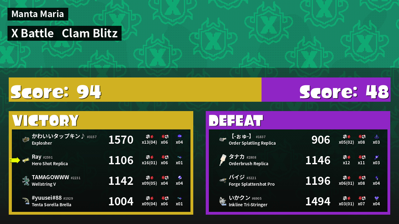 | Mode | Clam Blitz - X Battle | ||