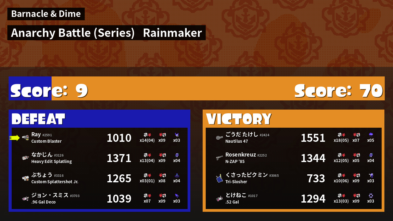 Kills / Deaths | 10 + 4 / 9 > Kill Ratio: 1.11 | ||