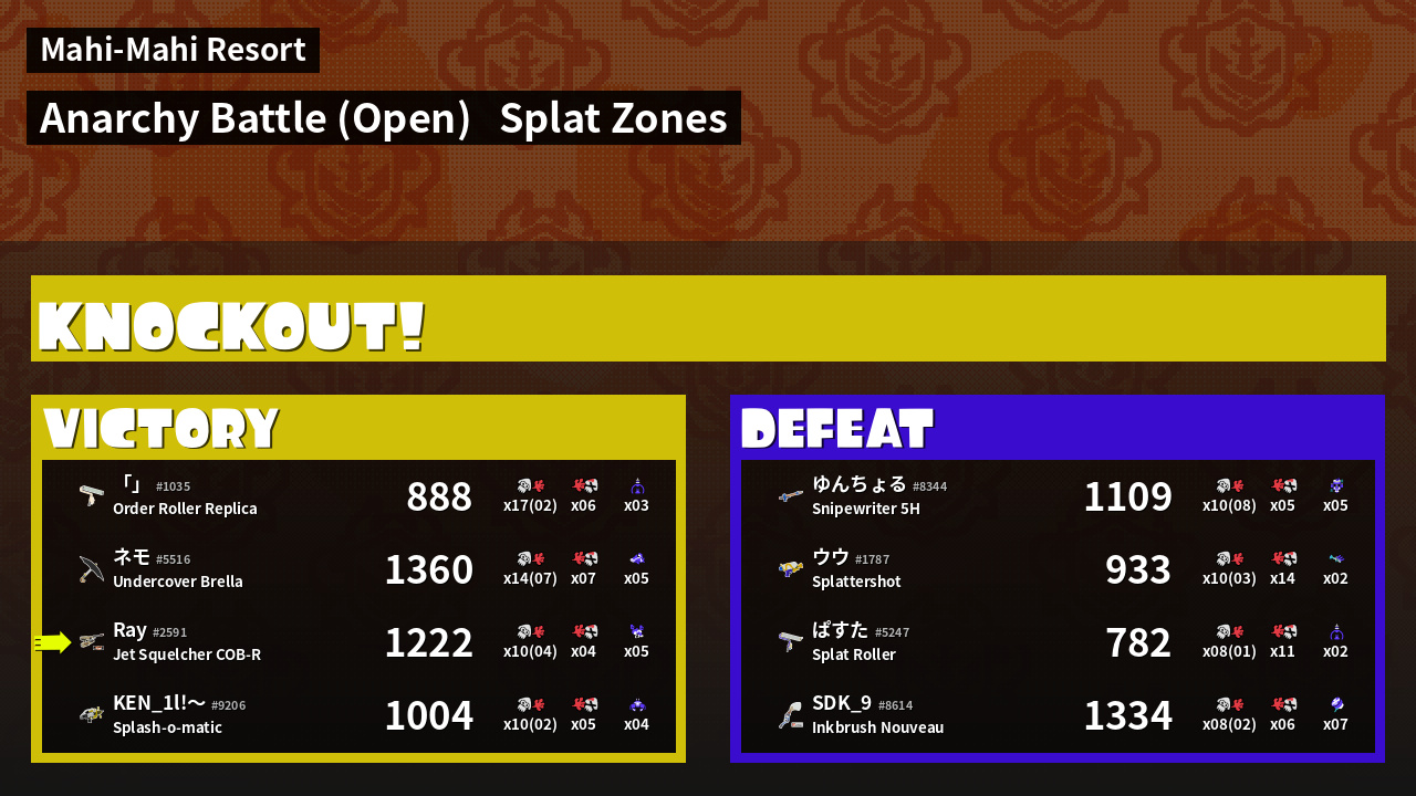 | Mode | Splat Zones - Anarchy Battle (Open) | ||