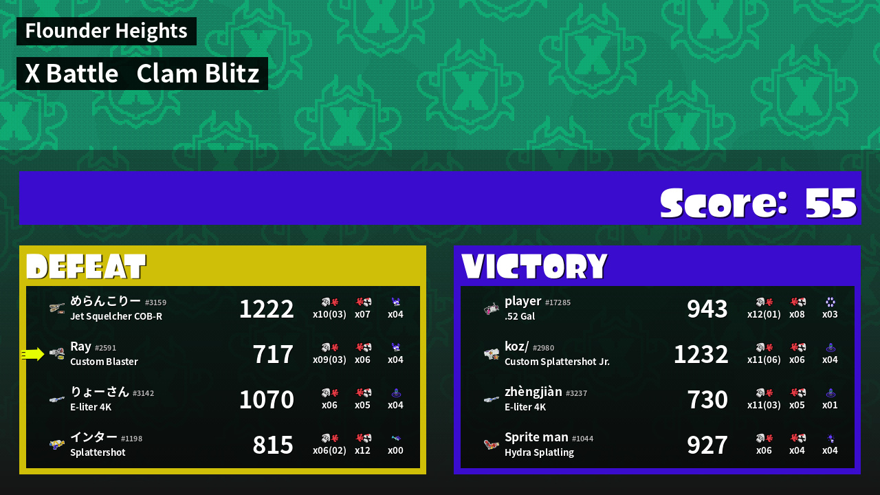 | Mode | Clam Blitz - X Battle | ||