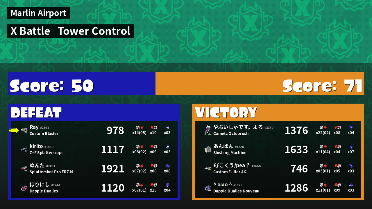 | Mode | Tower Control - X Battle | ||
