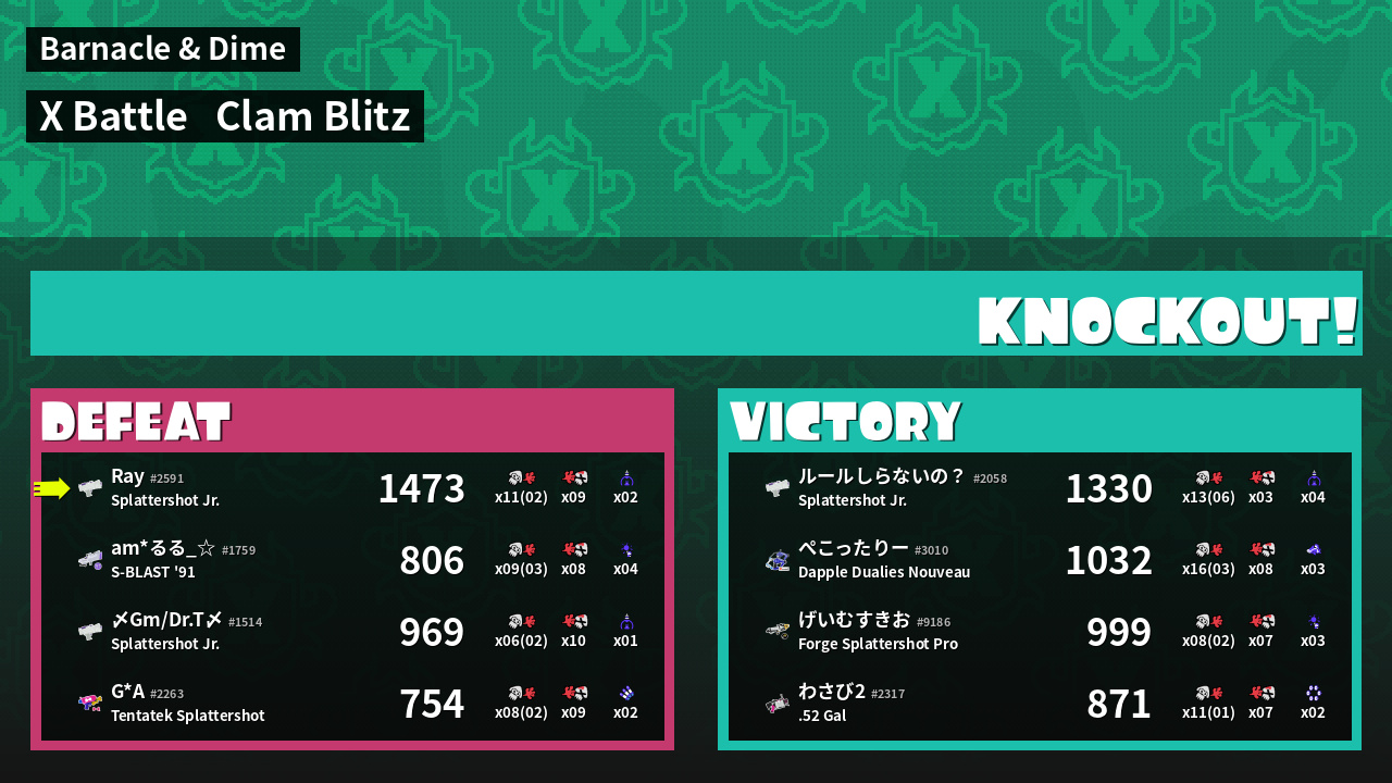 | Mode | Clam Blitz - X Battle | ||