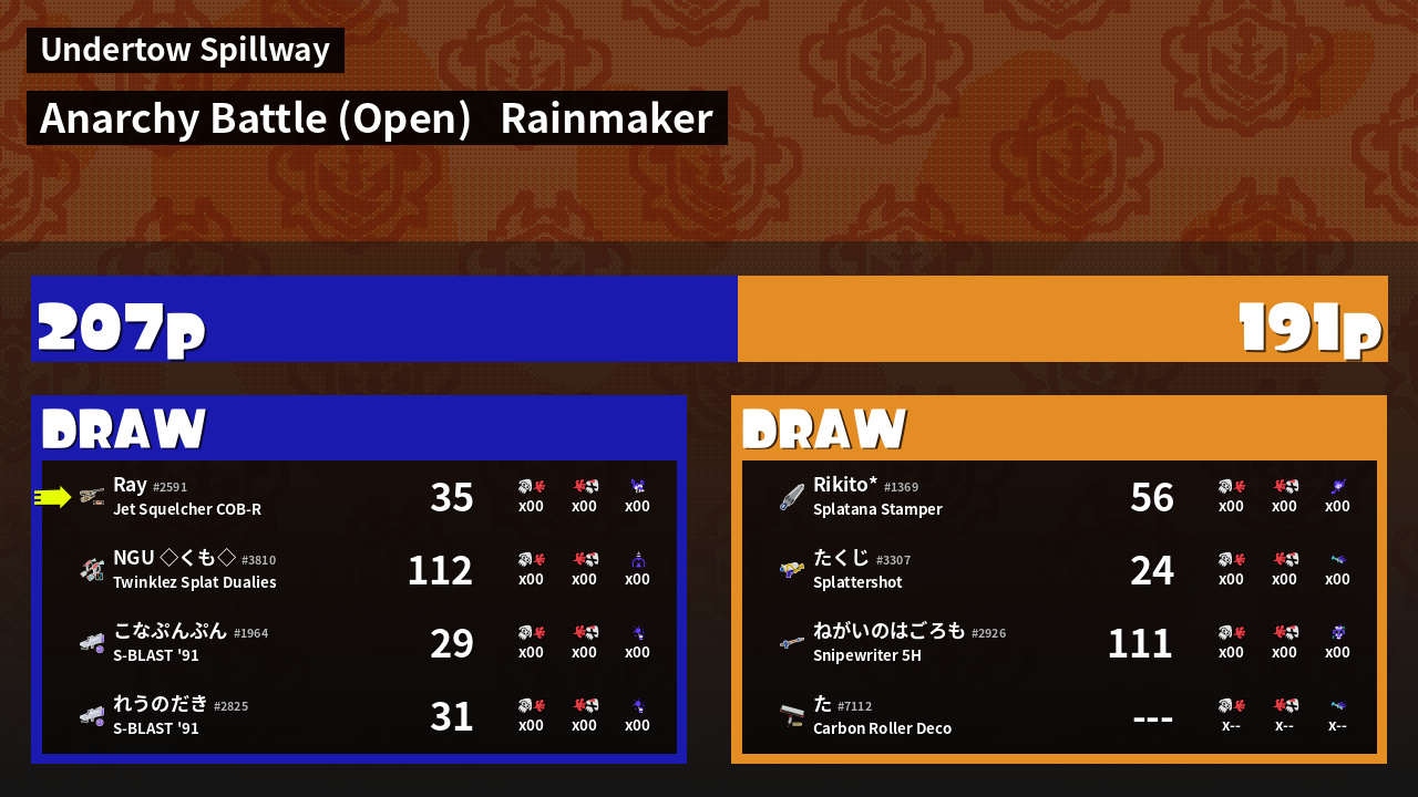| Mode | Rainmaker - Anarchy Battle (Open) | ||