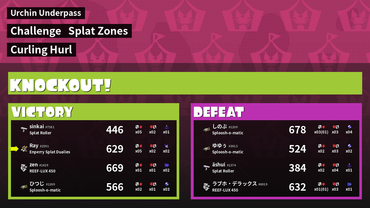 | Medals | #1 Overall Splatter #1 Splat Zone Guard #1 Enemy Splatter | ||