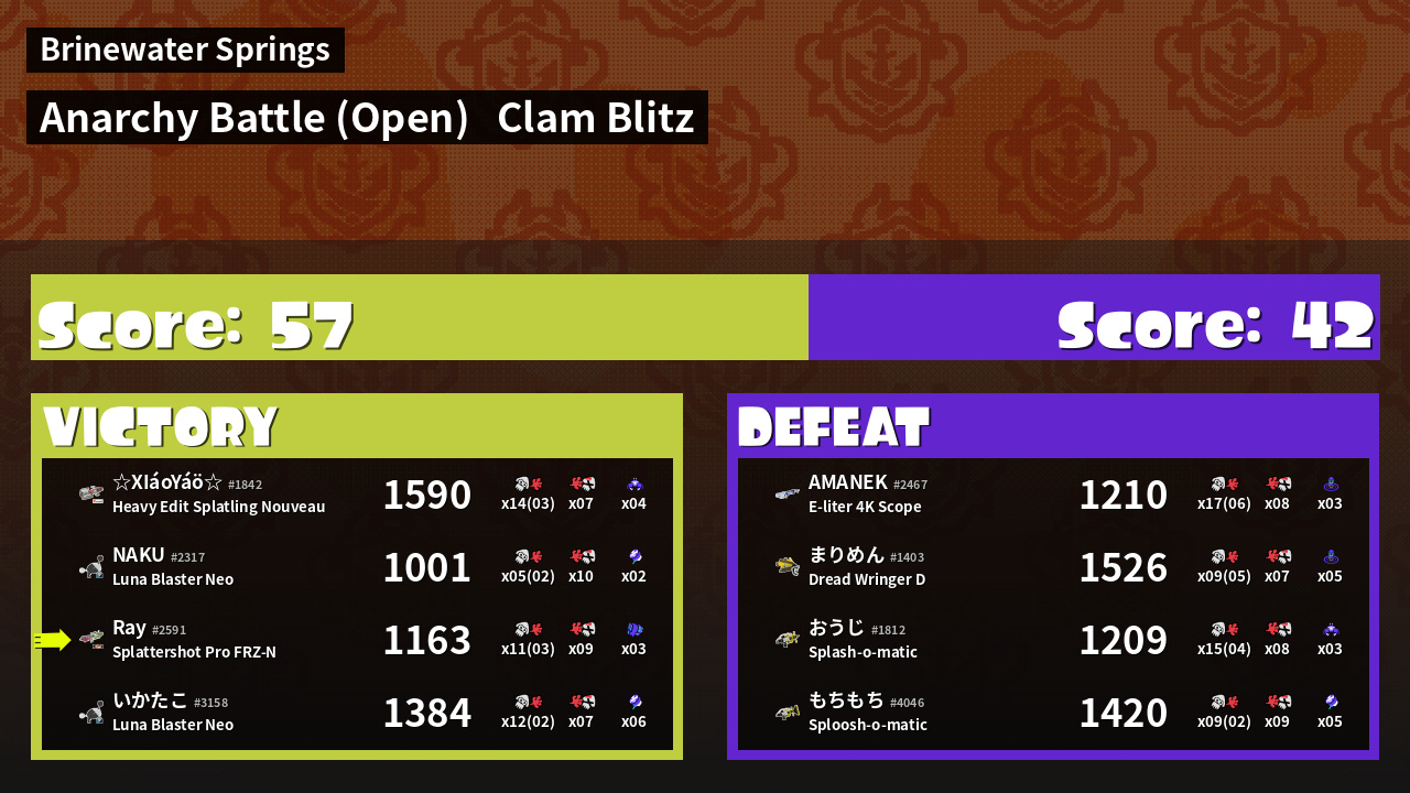 | Mode | Clam Blitz - Anarchy Battle (Open) | ||