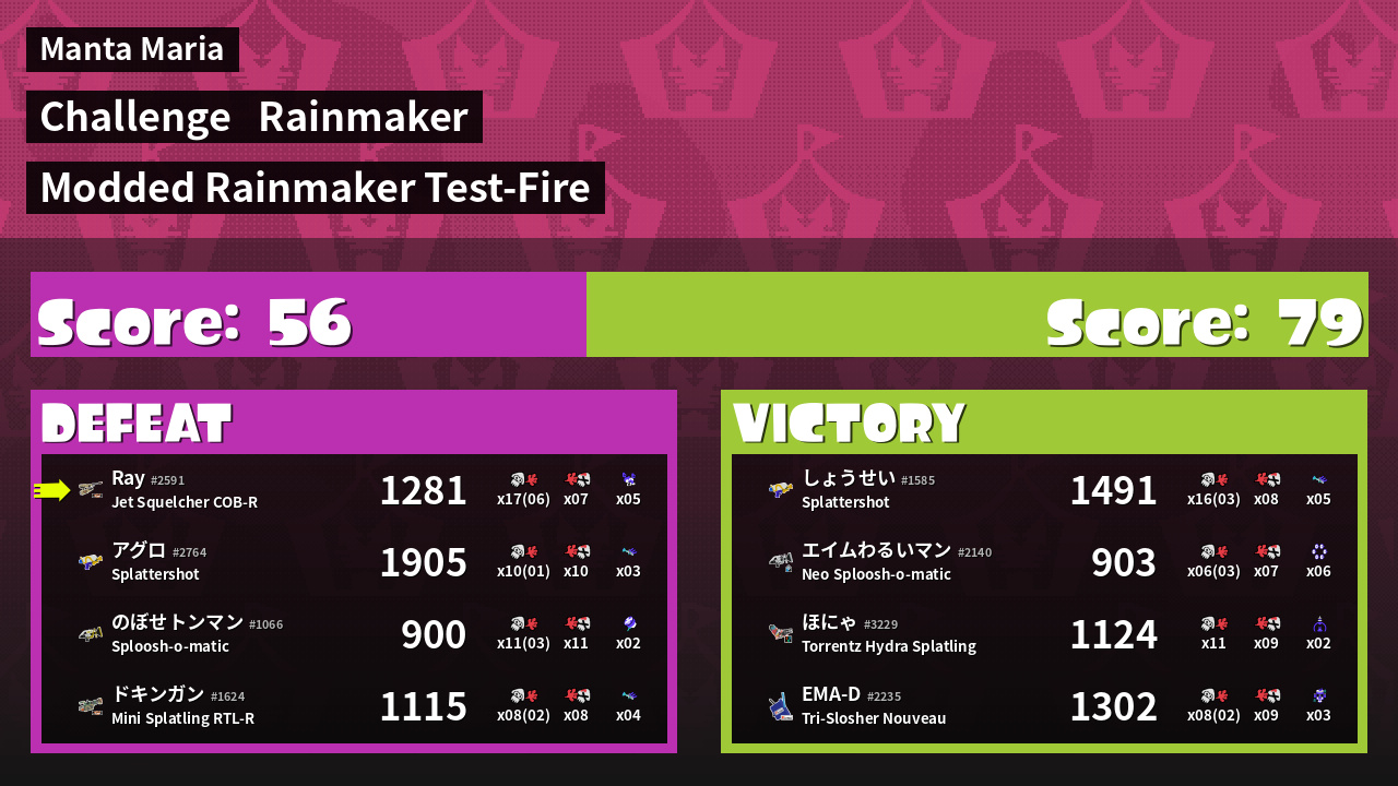 Kills / Deaths | 11 + 6 / 7 > Kill Ratio: 1.57 | ||