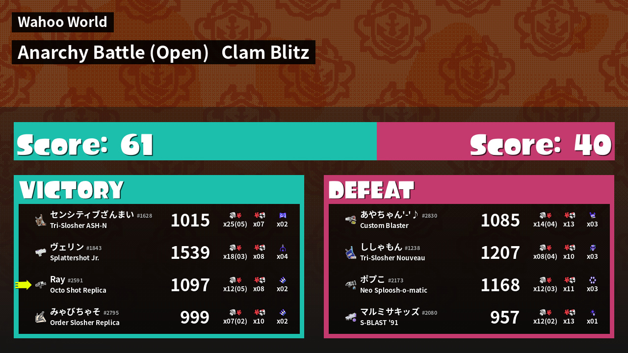 | Mode |  Clam Blitz -  Anarchy Battle (Open) | ||