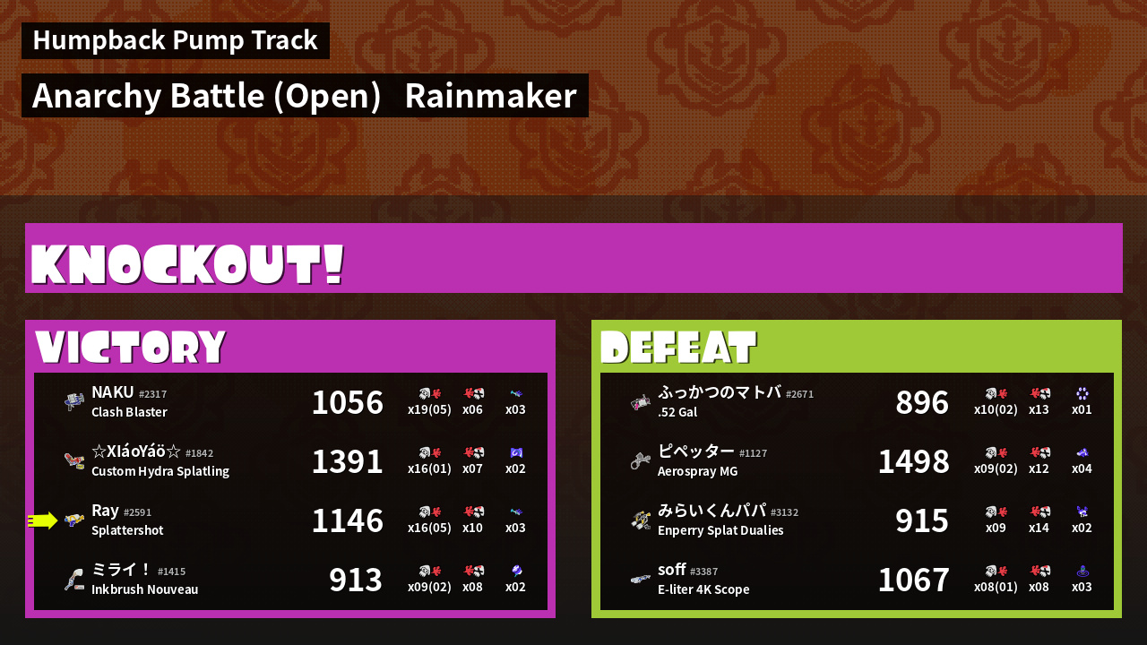| Mode | Rainmaker - Anarchy Battle (Open) | ||