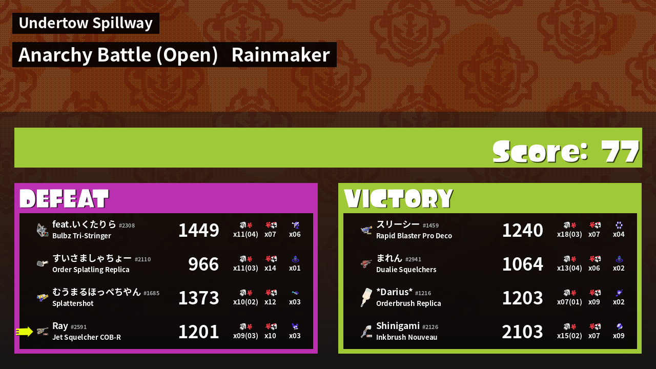 | Mode | Rainmaker - Anarchy Battle (Open) | ||