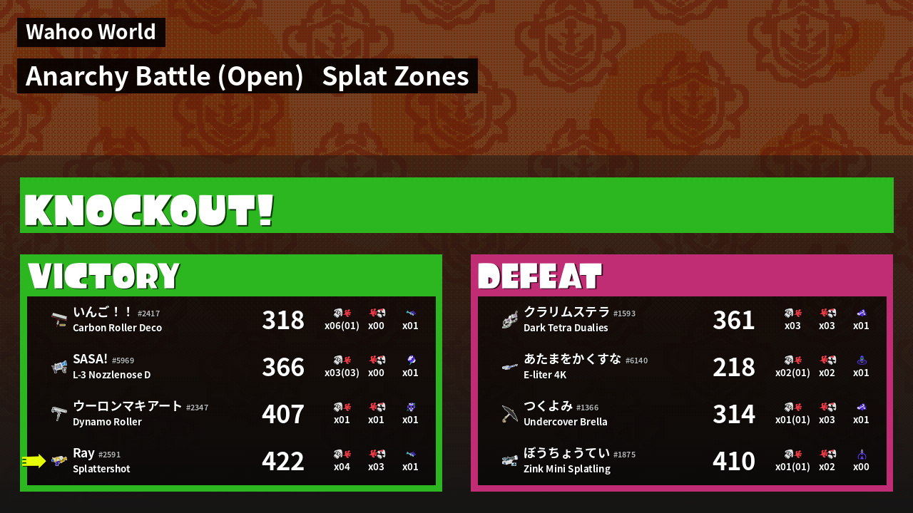 | Mode | Splat Zones - Anarchy Battle (Open) | ||