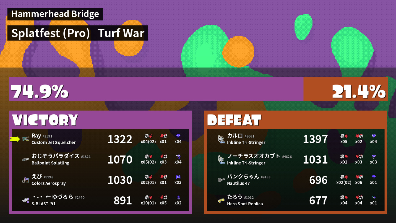 | Mode |  Turf War -  Splatfest (Pro) | ||