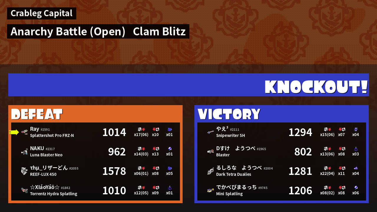 | Mode | Clam Blitz - Anarchy Battle (Open) | ||