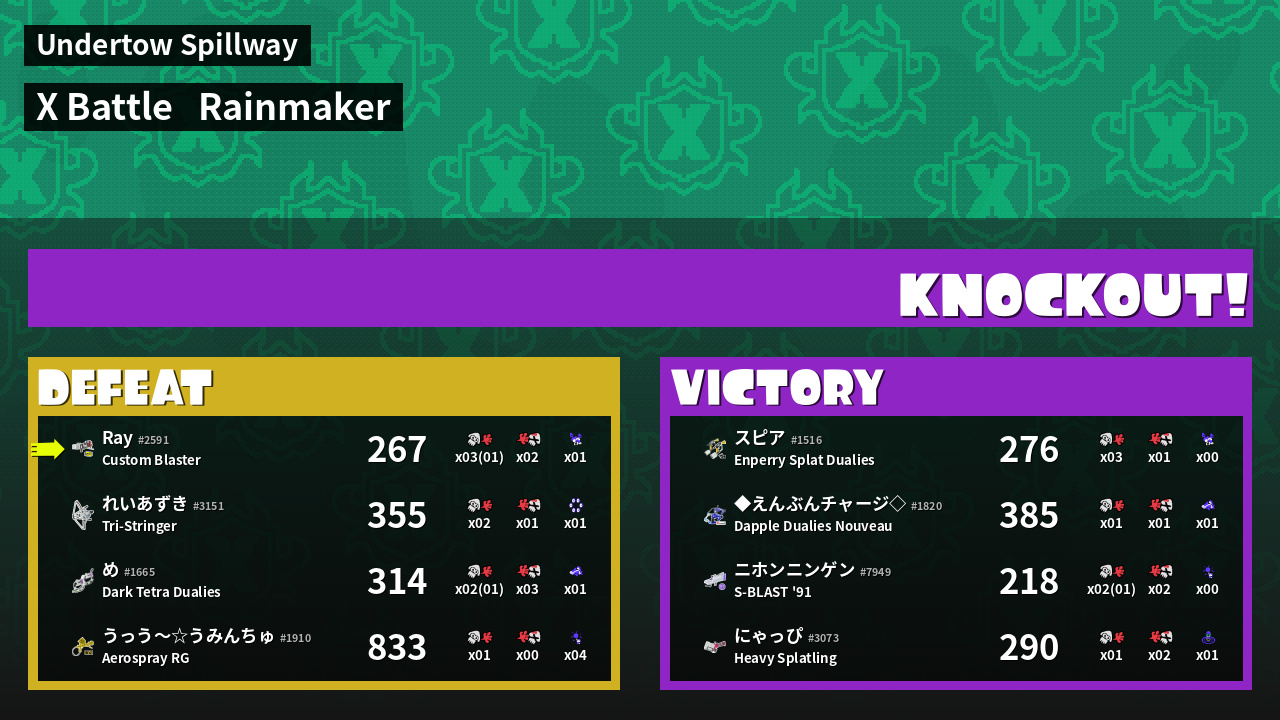 | Mode | Rainmaker - X Battle | ||