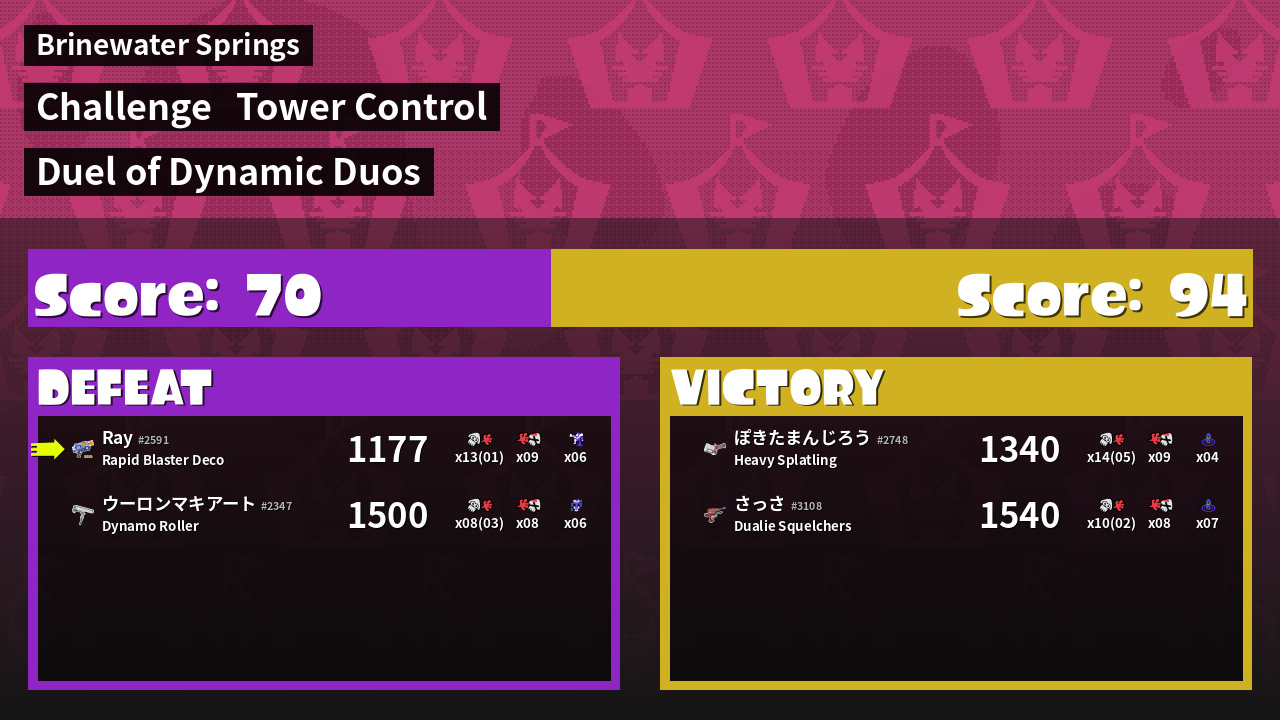 | Medals | #1 Overall Splatter #1 Super Jump Spot #1 Enemy Splatter | ||