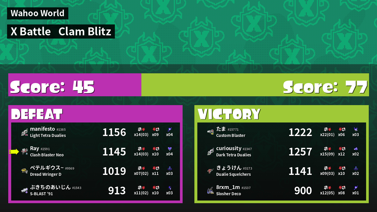| Name | Weapon | X | Inked |  k |  d | KR | Sp | |