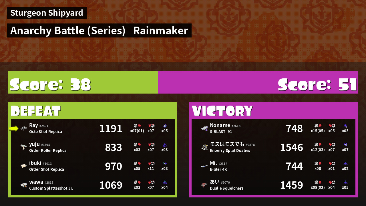 Name | Weapon | Inked | ![]() |