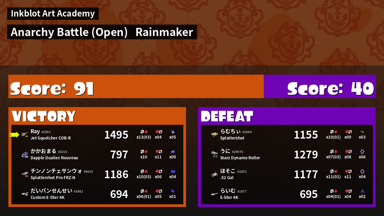 Kills / Deaths | 10 + 3 / 4 > Kill Ratio: 2.50 | ||