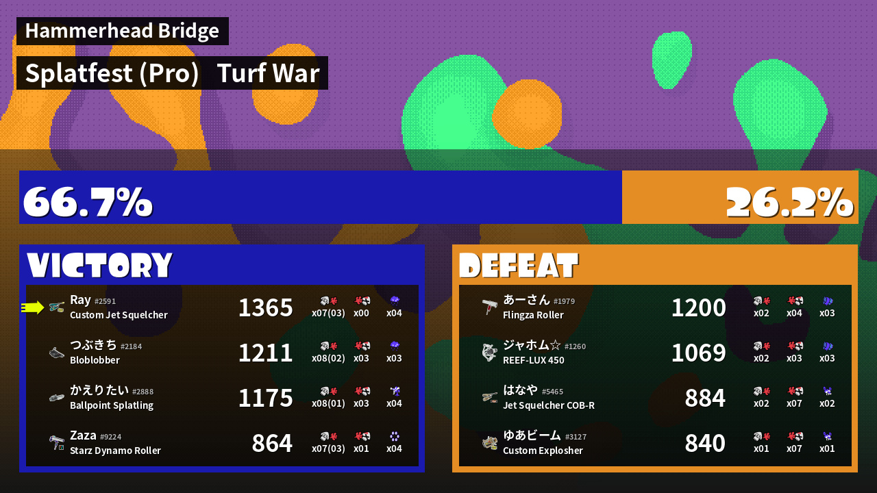 | Mode |  Turf War -  Splatfest (Pro) | ||