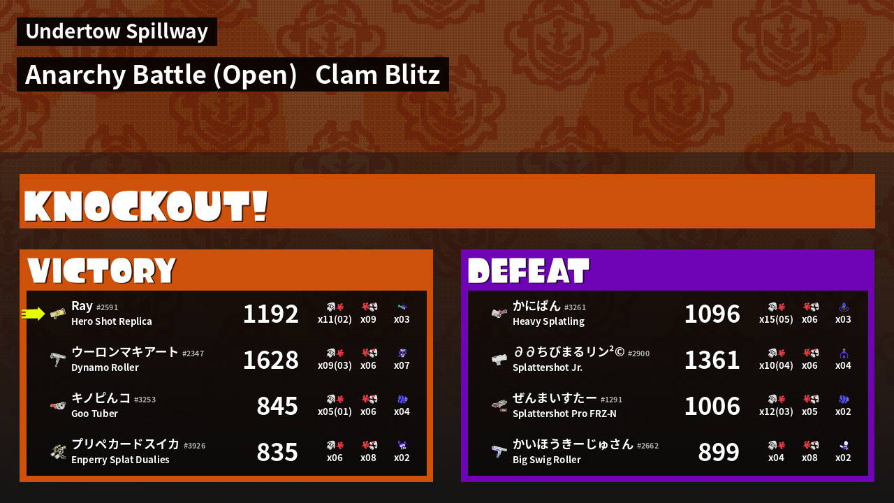 | Mode | Clam Blitz - Anarchy Battle (Open) | ||