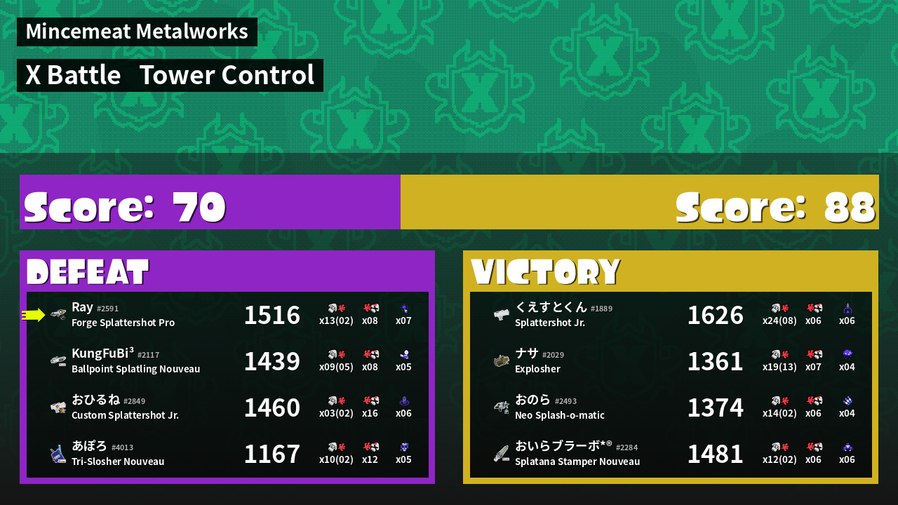 Kills / Deaths | 11 + 2 / 8 > Kill Ratio: 1.38 | ||