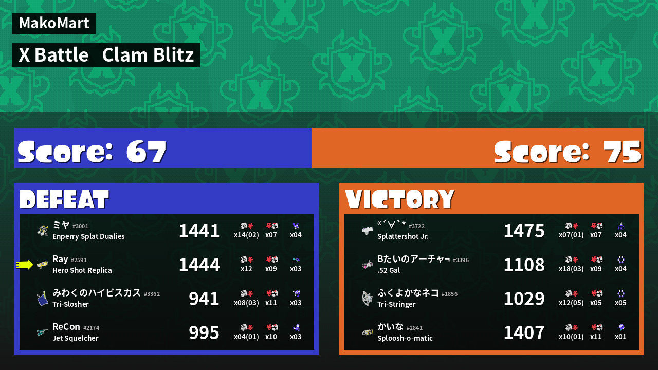 | Medals |  #1 Turf Inker  #1 Super Jump Spot  #1 Enemy Splatter | ||