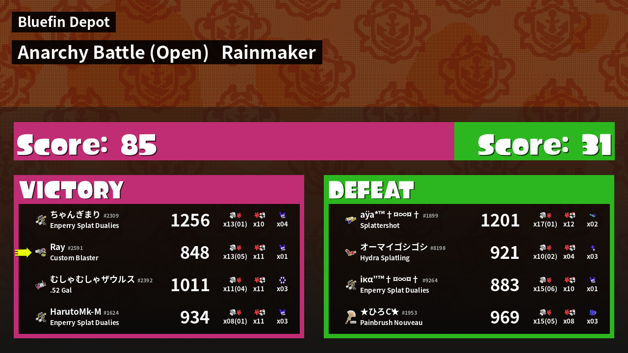 | Mode | Rainmaker - Anarchy Battle (Open) | ||