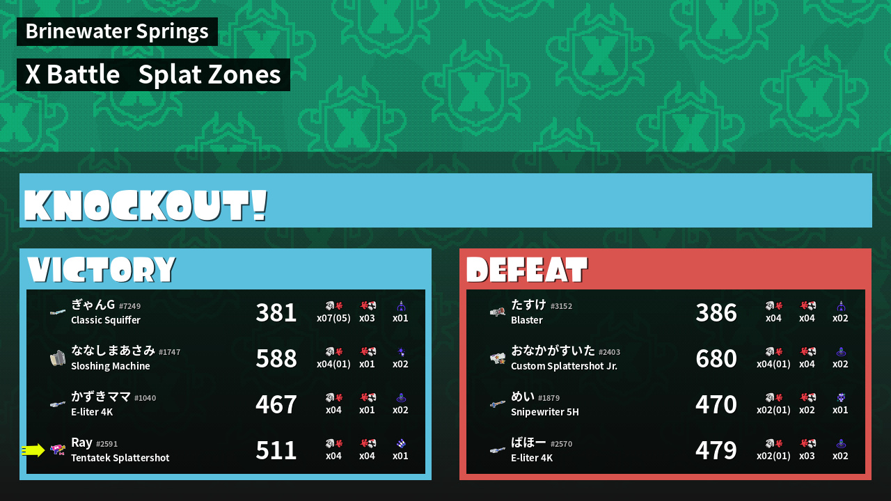 | Mode | Splat Zones - X Battle | ||