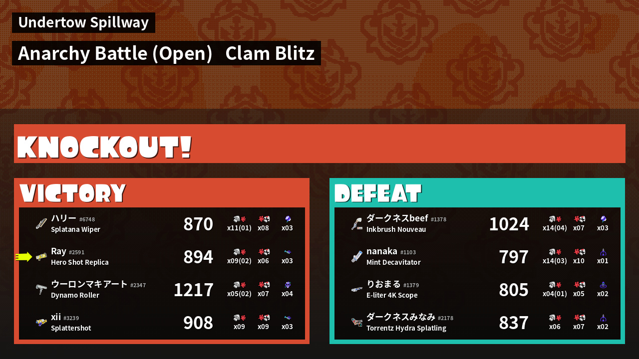 | Mode | Clam Blitz - Anarchy Battle (Open) | ||