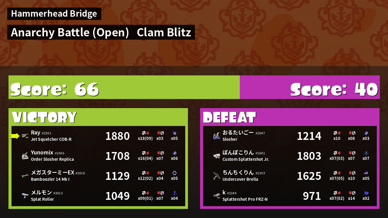 | Mode | Clam Blitz - Anarchy Battle (Open) | ||