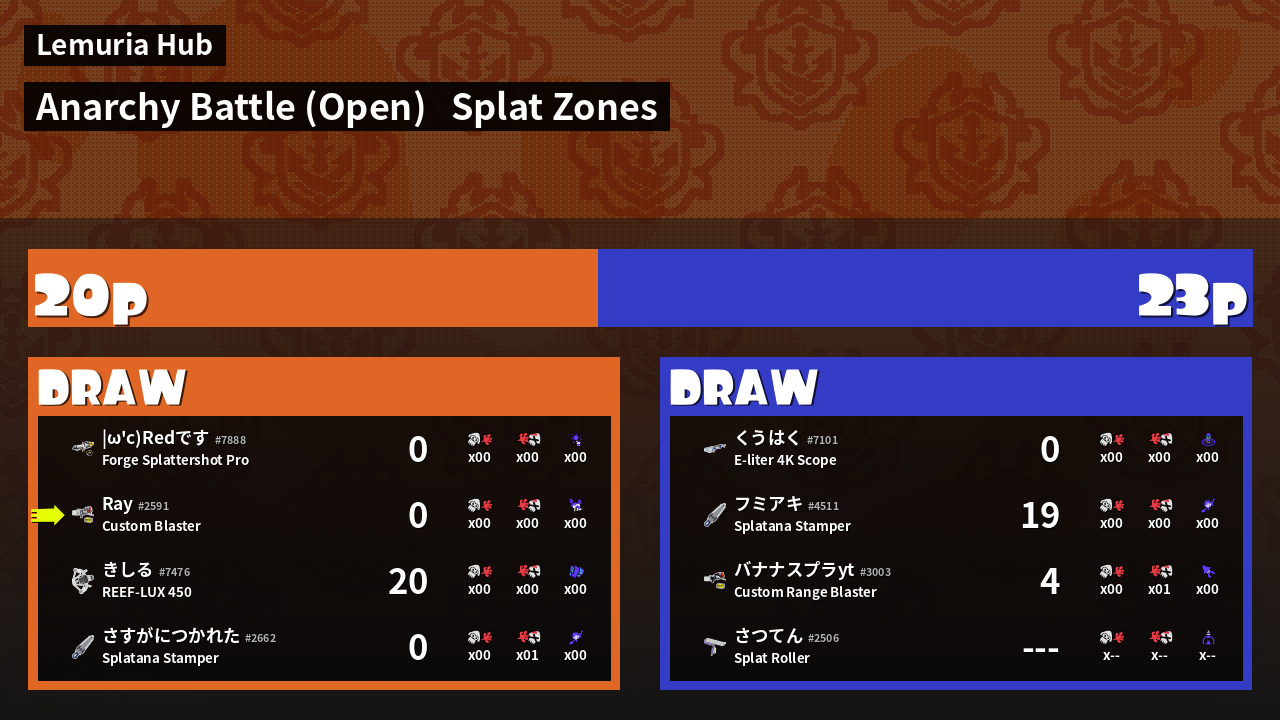 | Mode | Splat Zones - Anarchy Battle (Open) | ||