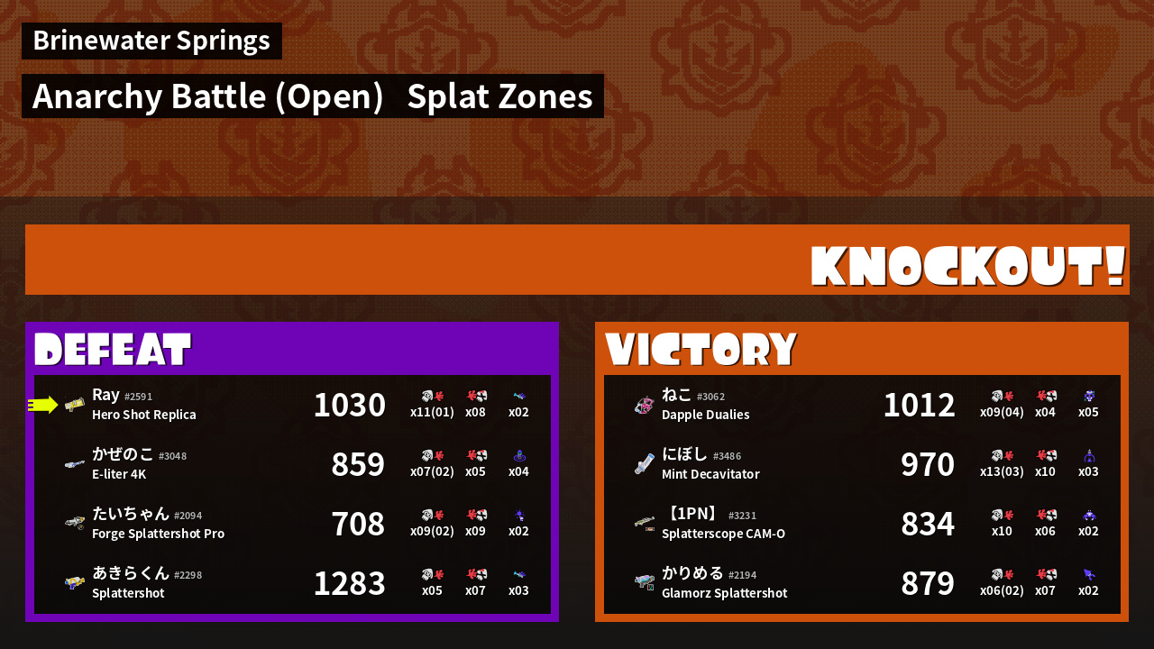 | Mode | Splat Zones - Anarchy Battle (Open) | ||