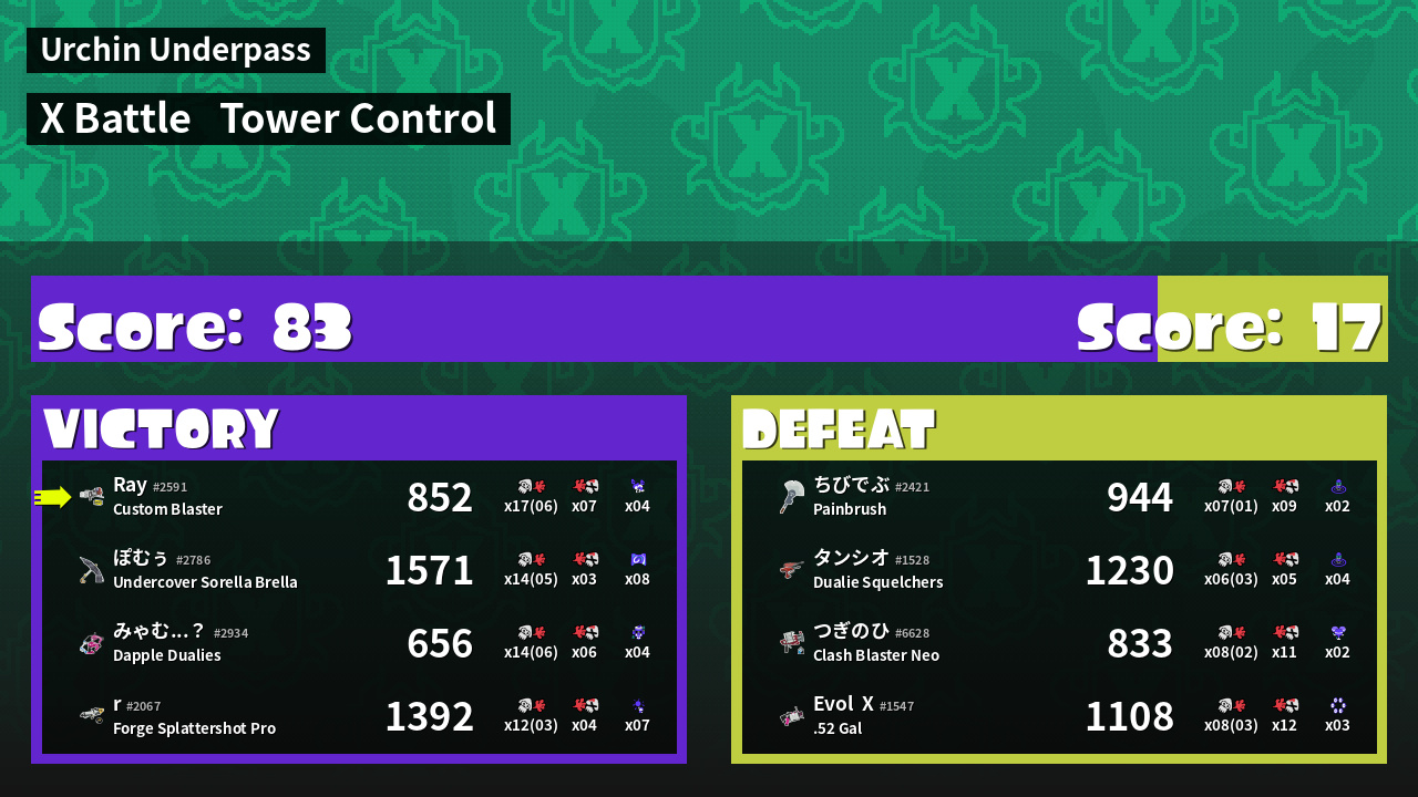 | Medals | #1 Overall Splatter #1 Enemy Splatter #1 Splat Assister | ||