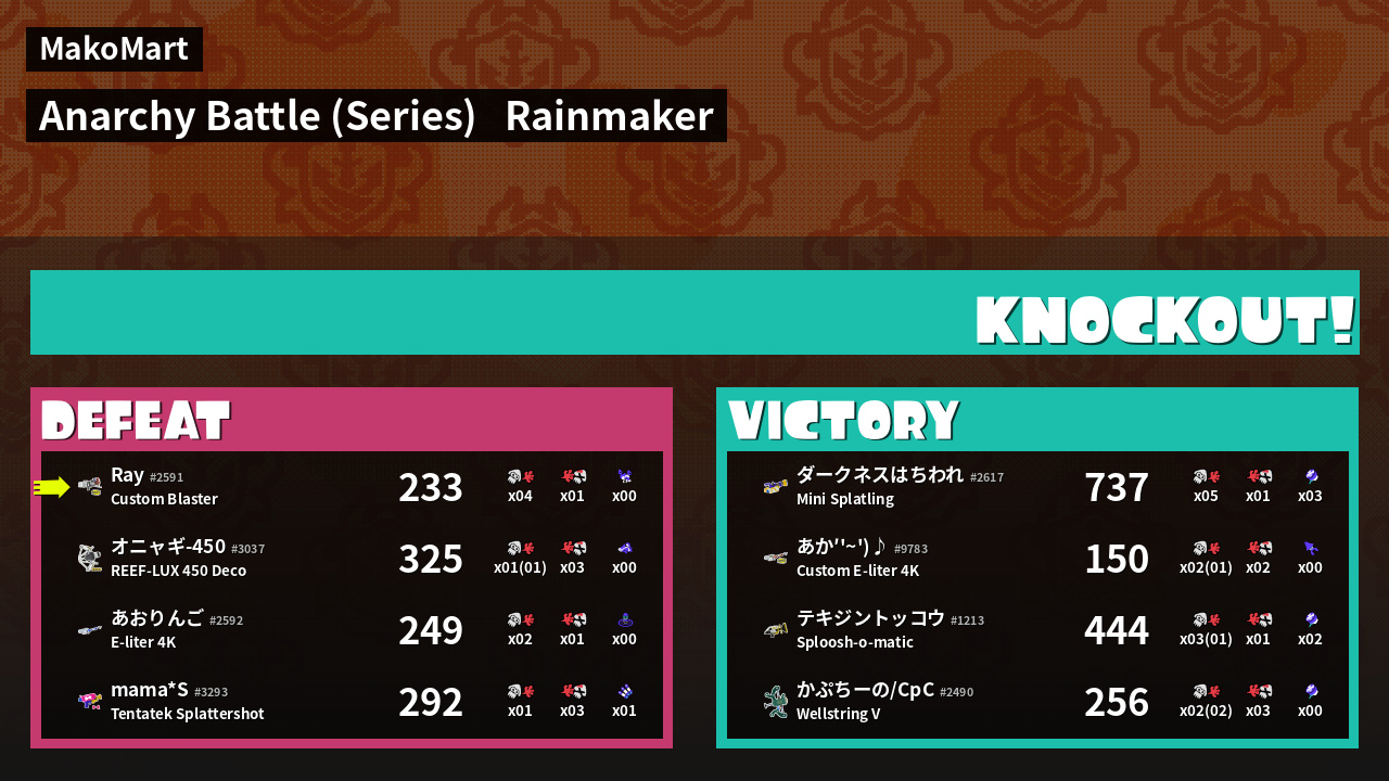 | Mode | Rainmaker - Anarchy Battle (Series) | ||