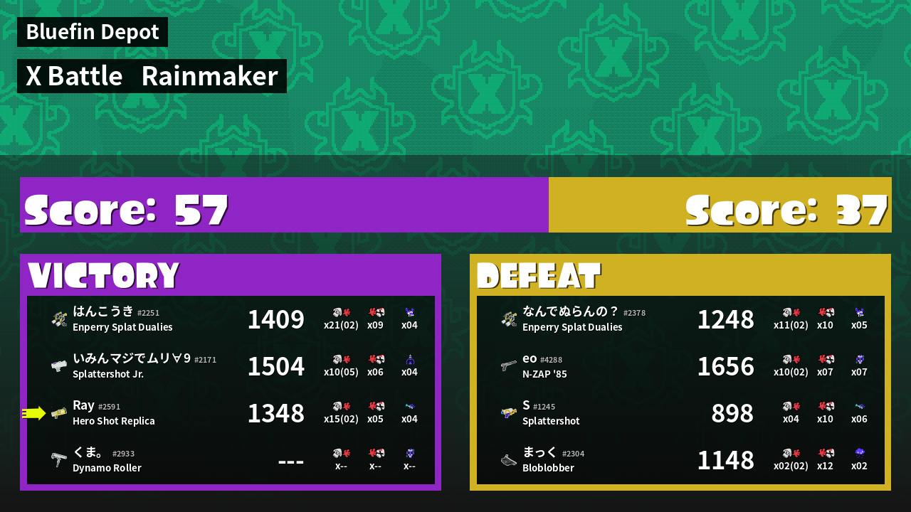 | Mode | Rainmaker - X Battle | ||