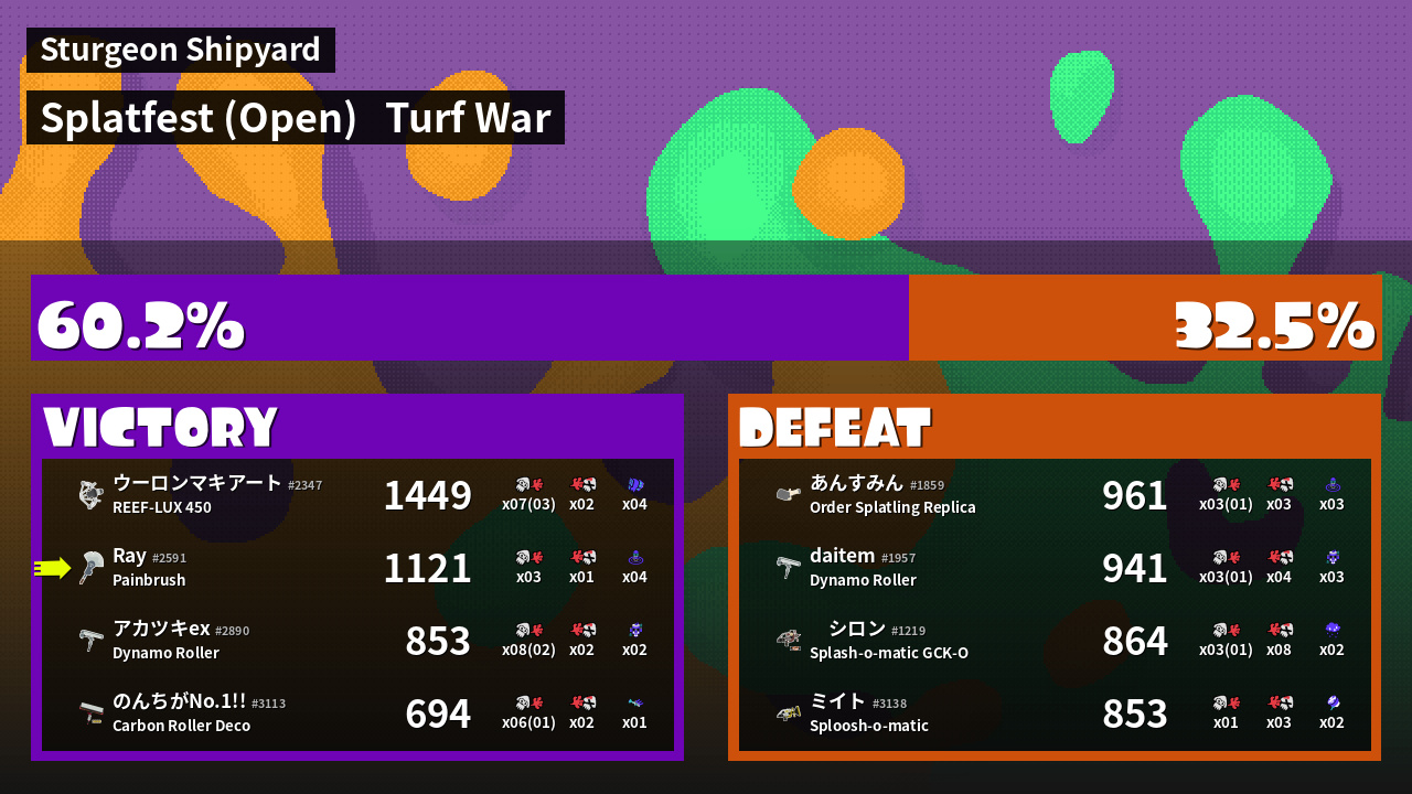 | Medals | #1 Enemy-Base Inker #1 Wave Breaker User #2 Turf Inker | ||