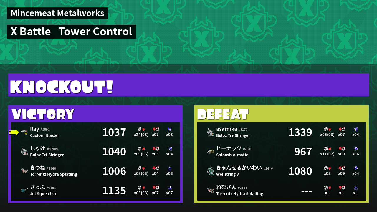 | Mode | Tower Control - X Battle | ||