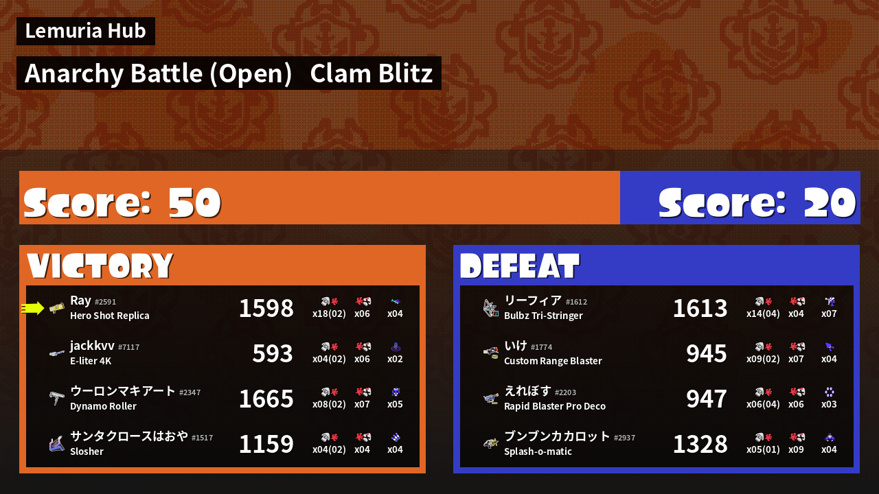 | Mode | Clam Blitz - Anarchy Battle (Open) | ||