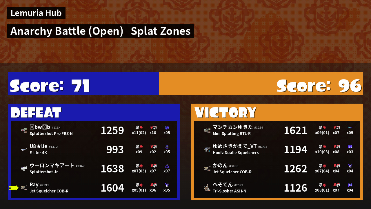 | Mode | Splat Zones - Anarchy Battle (Open) | ||