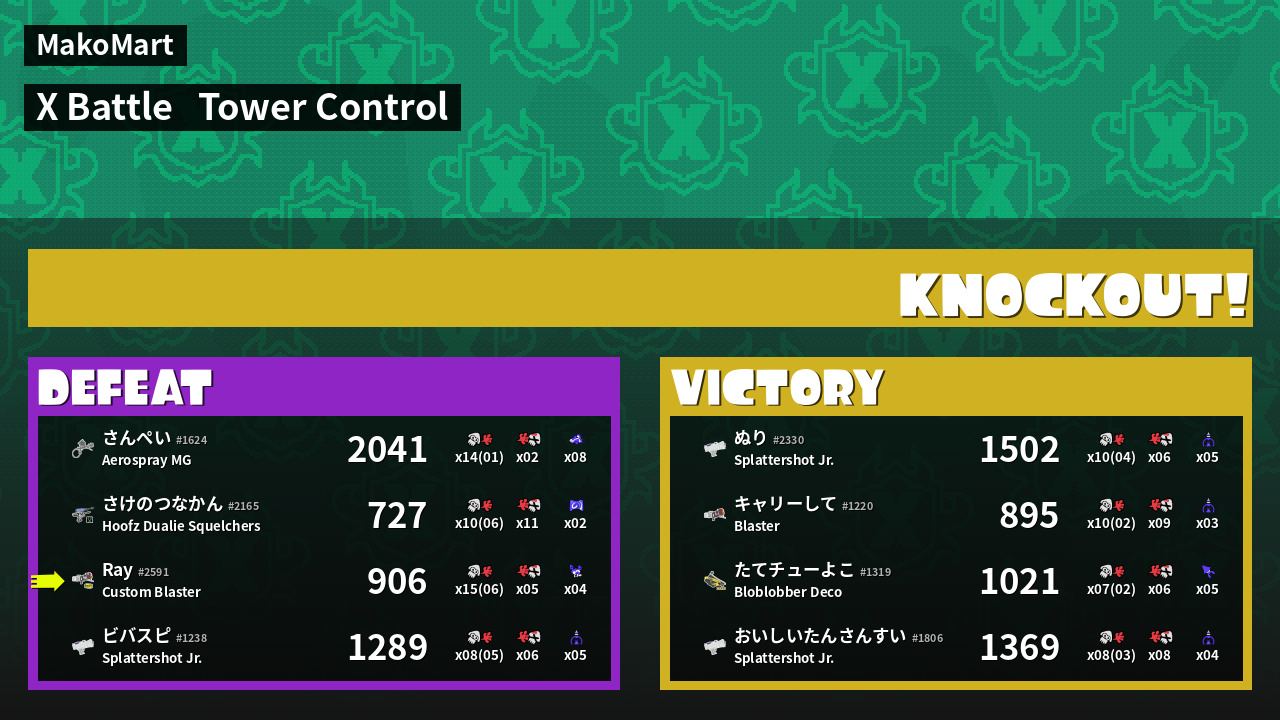 | Medals | #1 Overall Splatter #1 Splat Assister #1 Tower Stopper | ||