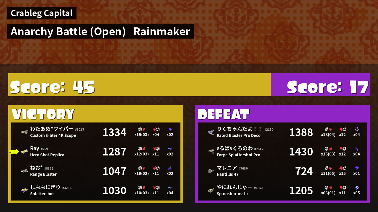 | Mode | Rainmaker - Anarchy Battle (Open) | ||