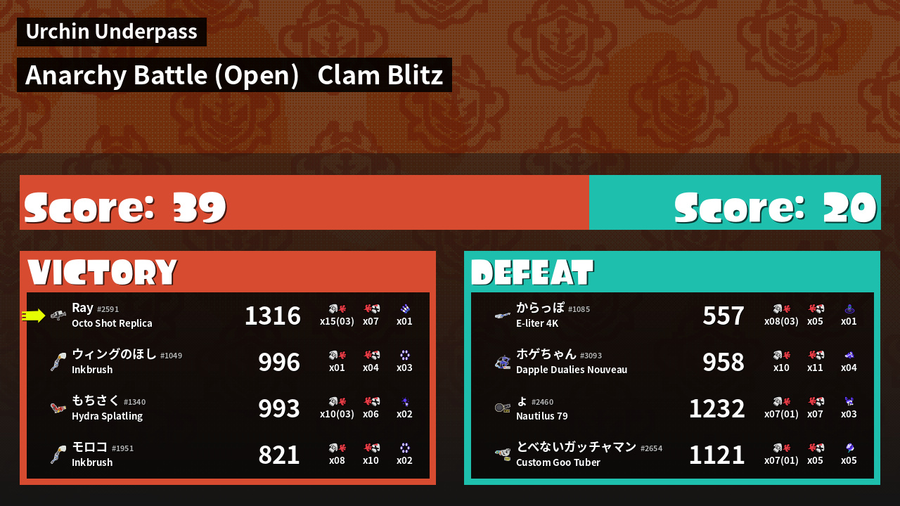 | Mode |  Clam Blitz -  Anarchy Battle (Open) | ||