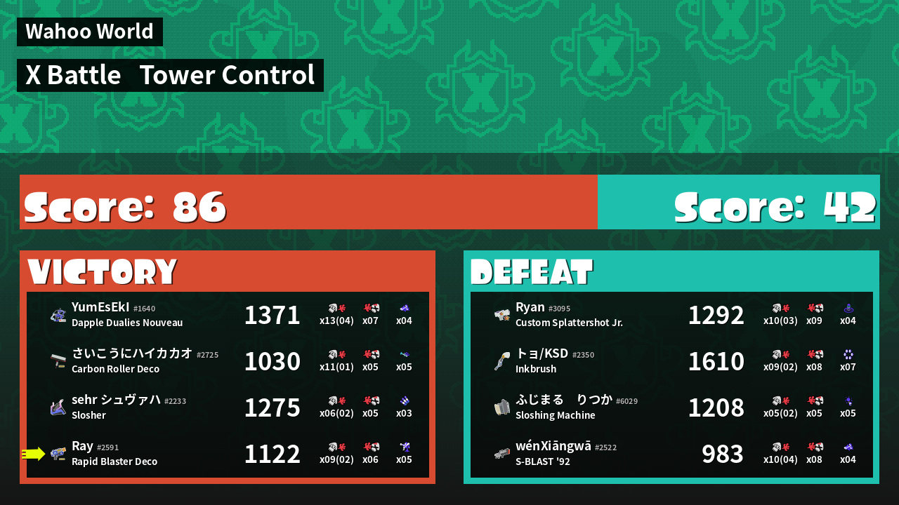 Kills / Deaths | 7 + 2 / 6 > Kill Ratio: 1.17 | ||