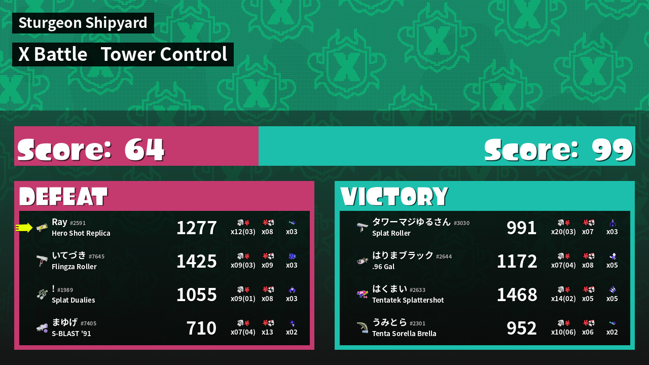 | Mode | Tower Control - X Battle | ||