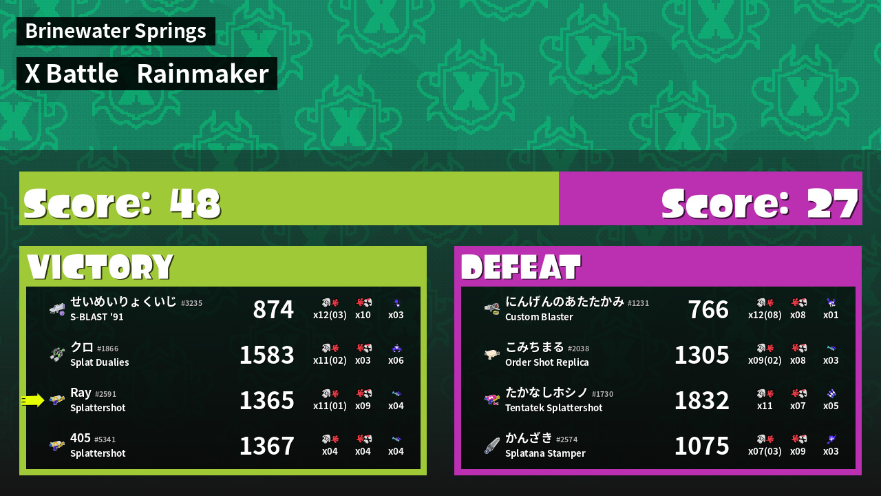 Kills / Deaths | 10 + 1 / 9 > Kill Ratio: 1.11 | ||