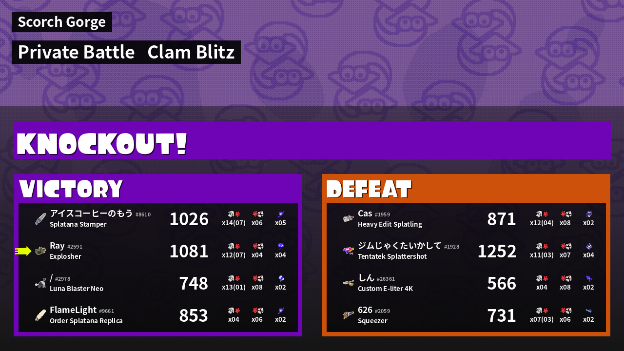 | Mode | Clam Blitz - Private Battle | ||