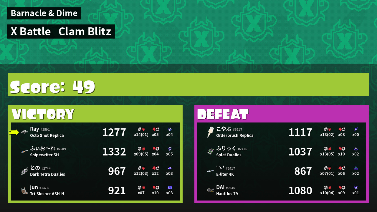 | Medals | #1 Overall Splatter #1 Popular Target #1 Enemy Splatter | ||