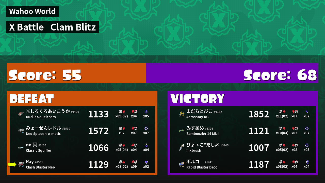 | 愛交際的真格魚虎對戰愛好者  ※しろくろあいこうか #1400 |  Dualie Squelchers                    | M | 1,133 | 7 + 2 | 4 | 1.75 |  5 | |