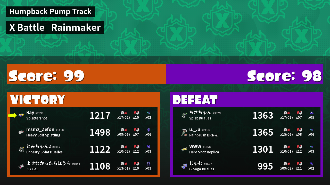 Kills / Deaths | 15 + 2 / 10 > Kill Ratio: 1.50 | ||