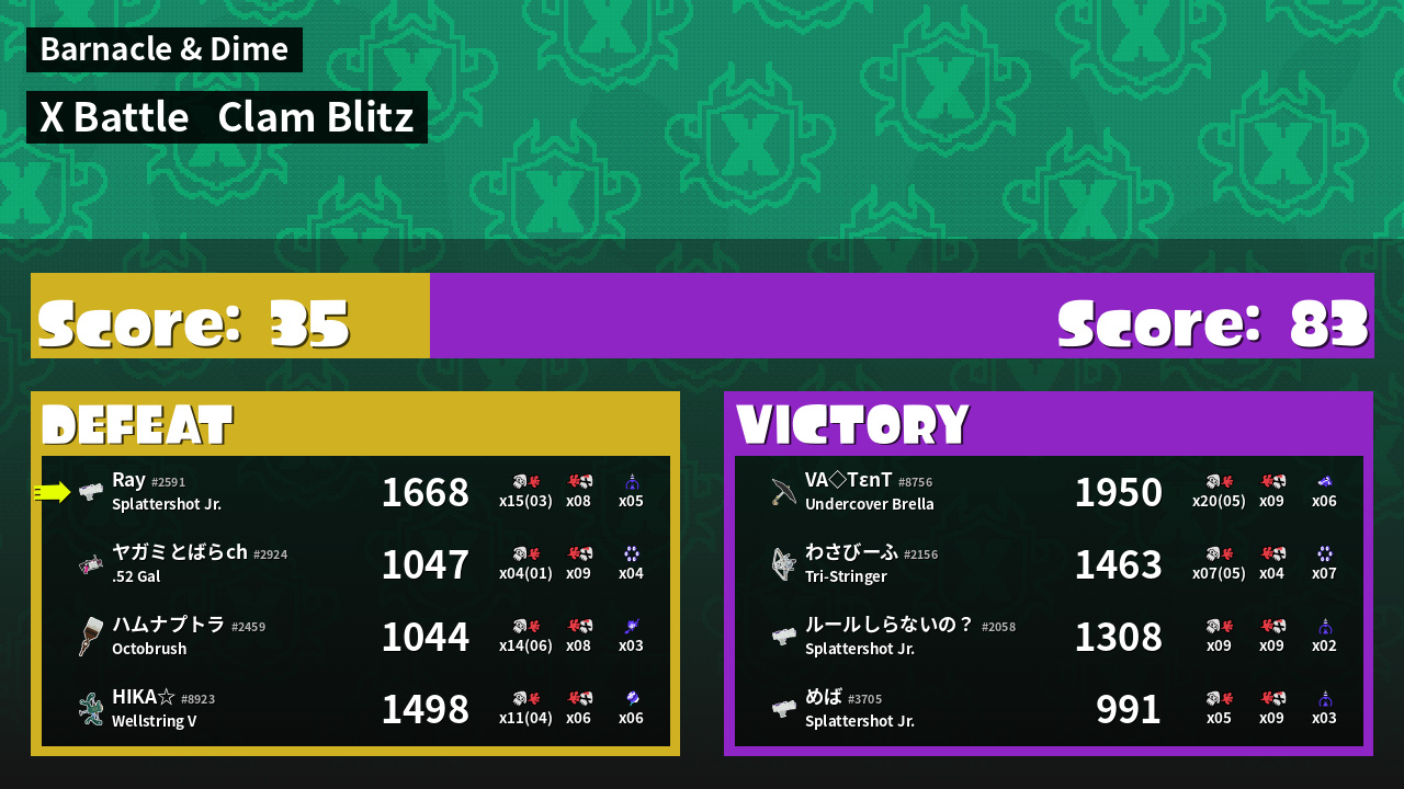 | Mode | Clam Blitz - X Battle | ||