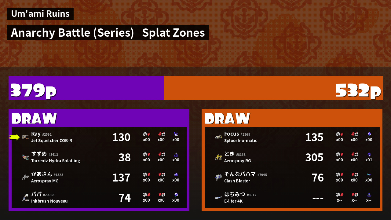 Kills / Deaths | 0 + 0 / 0 = Kill Ratio: 1.00 | ||